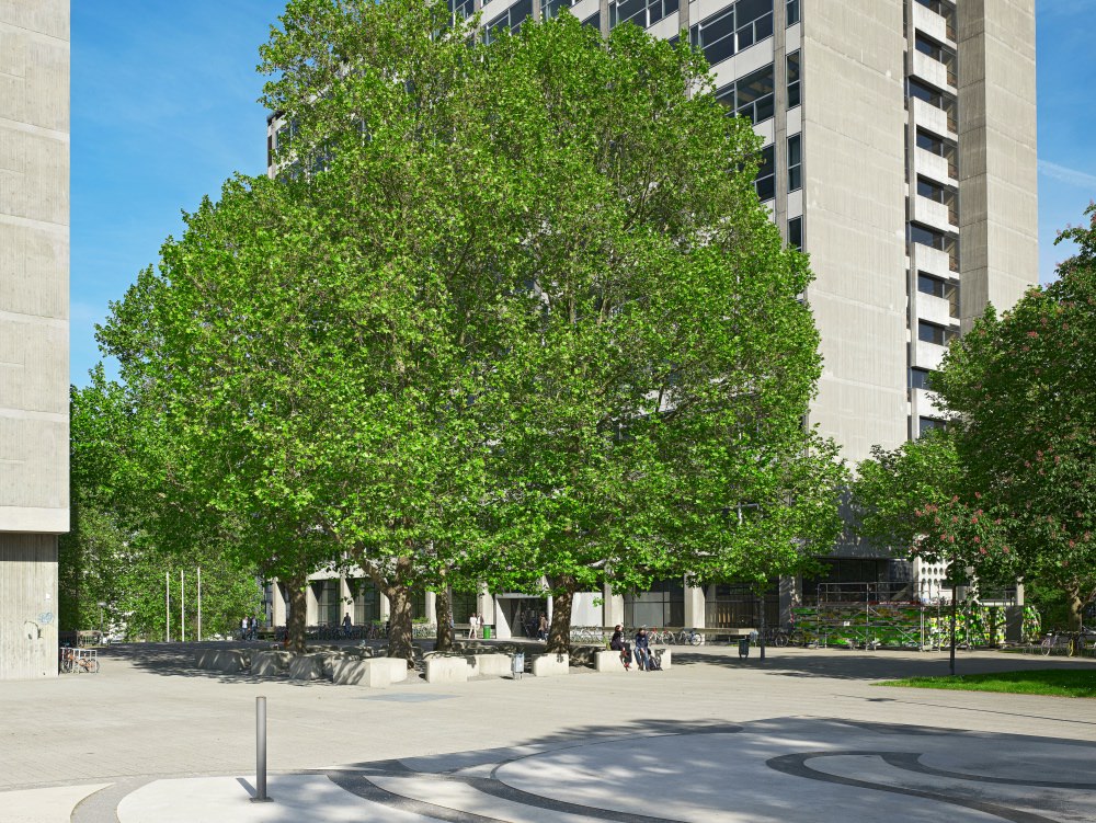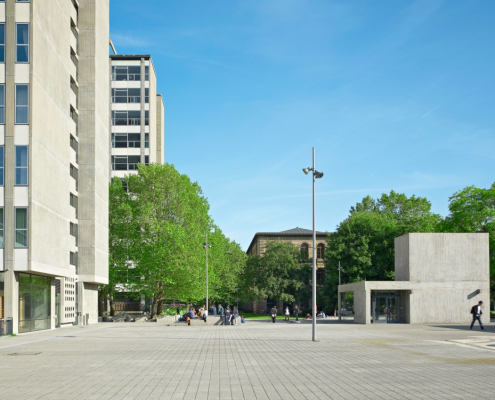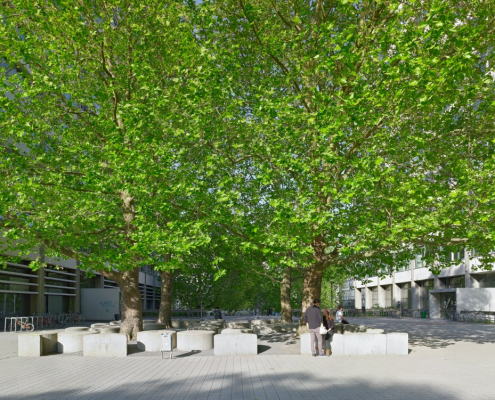 Im Zuge der Sanierung der Tiefenhörsäle an der Universität Stuttgart und aufgrund der veränderten Anforderungen an den Campus war es erforderlich, die Außenanlagen umzugestalten. Der Campus erstreckt sich über eine Fläche von ca. 5330 m² und dient – in Nachbarschaft zum Stadtgarten – als wichtiger Erholungsraum der Studenten der Hochschule.