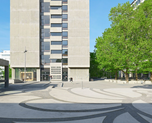 „…Das Ergebnis ist ein ungewöhnlicher und unverwechselbarer Außenraum, der eine großzügige und vielfältige Platzfläche bietet. Es wurden neue städtebauliche Verbindungen hergestellt und den vielfältigen Anforderungen von innen und außen entsprochen. Die starken bildlichen Qualitäten können aus unterschiedlichen Perspektiven erlebt werden und strahlen auch in die angrenzenden öffentlichen Räume aus…“ (aus einem Schreiben des Universitätsbauamts Stuttgart und Hohenheim)