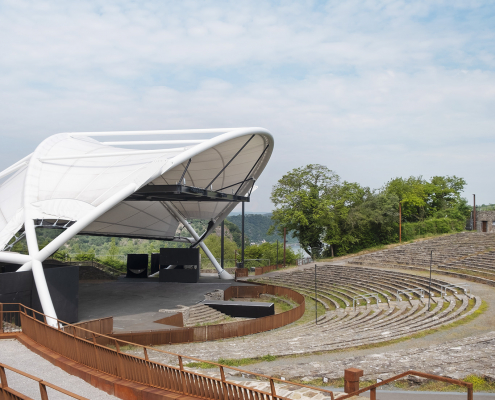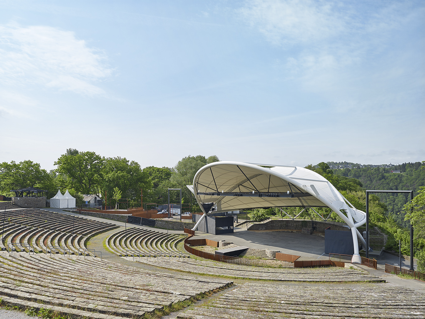 Profil: Ertüchtigung der Freilichtbühne Loreley mit neuem Bühnendach, Eingangsgebäude, Freitreppe, barrierefreien Zuschauertribünen, Toranlage sowie Modernisierung technischer Anlagen
