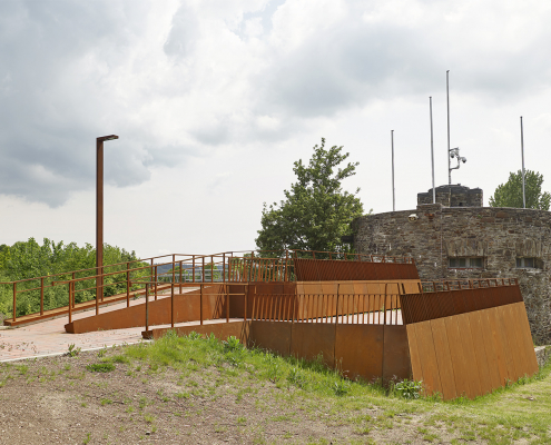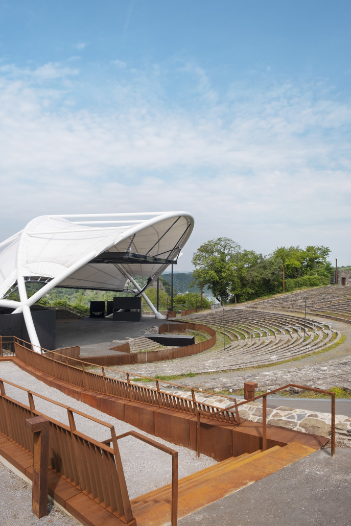 Das denkmalgeschützte Gelände der Freilichtbühne Loreley befindet sich in dem Gebiet „Oberes Mittelrheintal“ mit dem Status UNESCO-Welterbe und musste für die gewachsenen Anforderungen moderner Konzerte und Veranstaltungen modernisiert werden. Die Bühne erhielt ein neues Dach, der Zuschauerbereich wurde mit barrierefreien Tribünenbauten ergänzt. Der Eingangsbereich wurde komplett umgestaltet (Architektur Bühnendach und Eingangsgebäude: asp Stuttgart)
