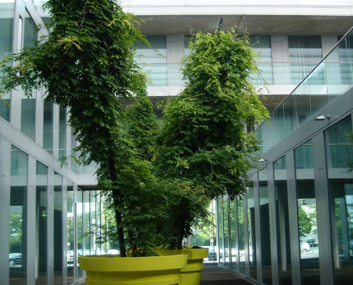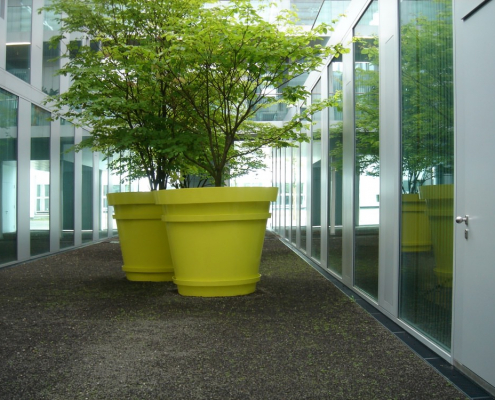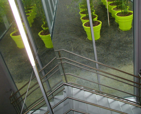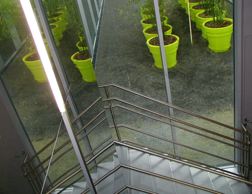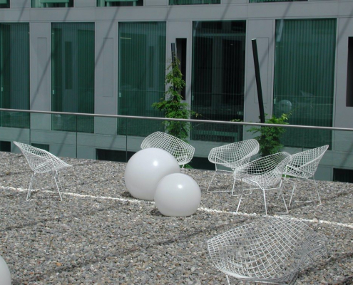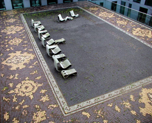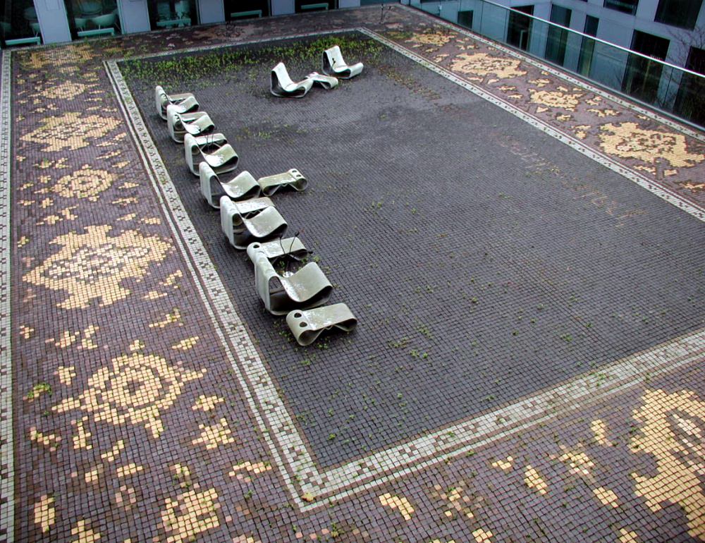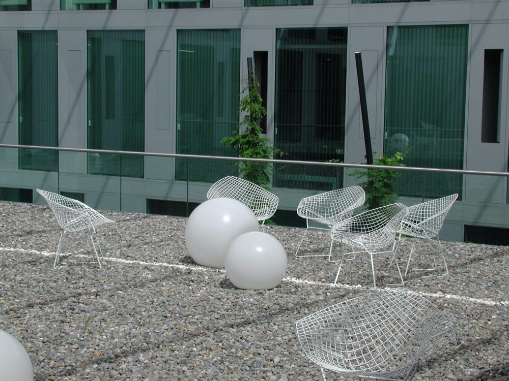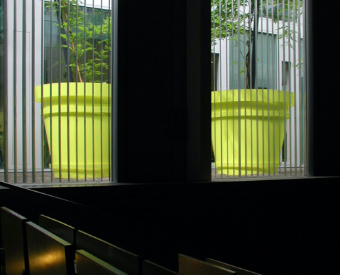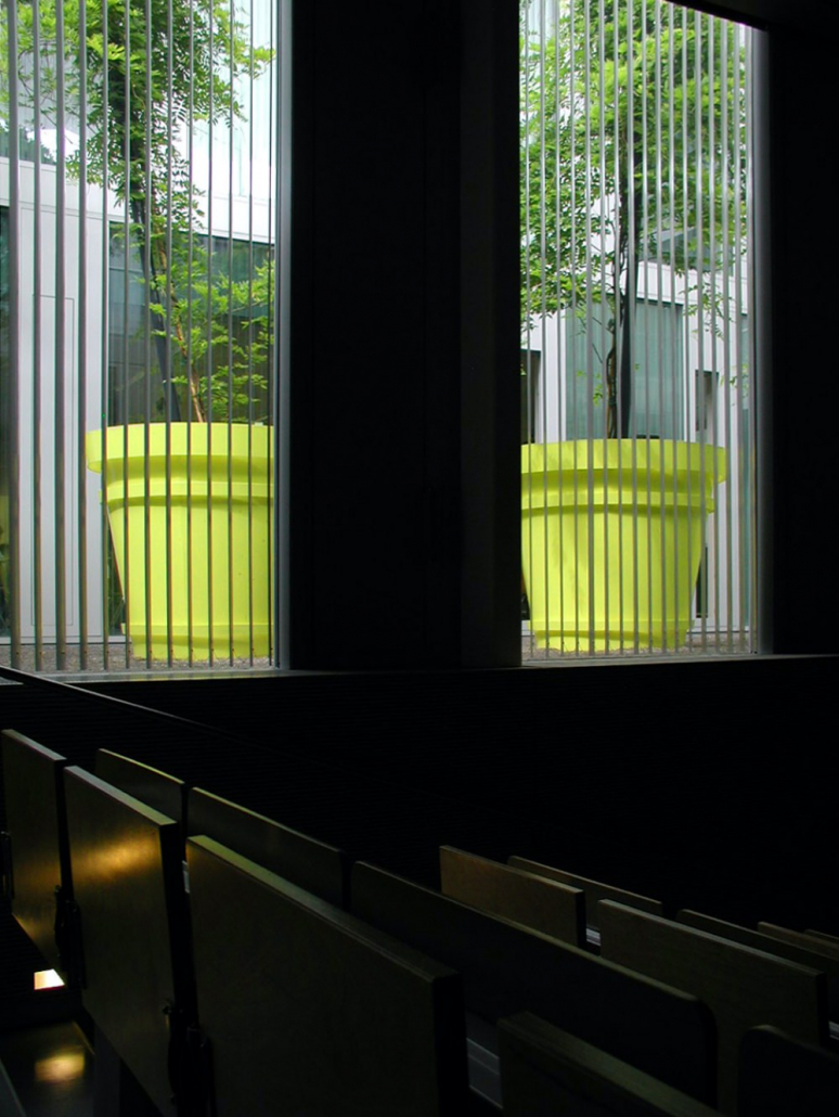 Entstanden sind vier unterschiedliche Treffpunkte und zugleich Ruhezonen, die Entspannung und Regeneration mit Elementen der Natur ermöglichen. Der hintergründige Witz bei der Aufbereitung des gewählten Themas Wohnzimmer wirkt umso passender, wenn man das junge Alter und die Bedürfnisse der Nutzer berücksichtigt. In diesem Fall handelt es sich um Informatikstudenten, also um eine Zielgruppe, die schon berufsbedingt viel Zeit vor dem Computer verbringt – ihr werden vier diskrete Gegenwelten angeboten. Das Projekt zeigt und beweist, dass mit vergleichsweise bescheidenen Mitteln neuartige, geradezu vorbildhafte Lösungen realisiert werden können.