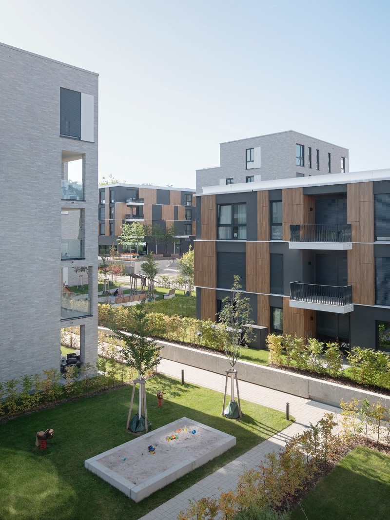 Das Wohngebiet bietet differenzierte Nutzungsangebote, die sowohl privaten Rückzug, urbane Nutzung mit Nahversorgung und Aufenthalt im Café oder Biergarten und zahlreiche Spiel- und Sportangebote für Kinder und Jugendliche beinhalten.